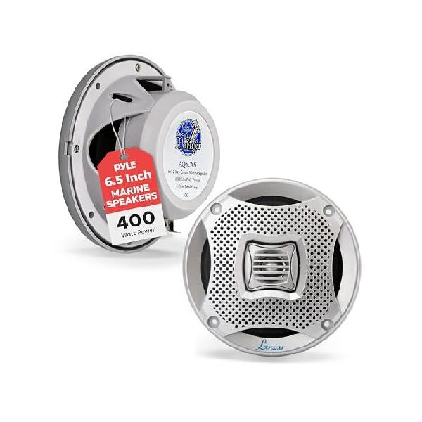 【並行輸入品】 Lanzar 6.5インチマリンスピーカー - 2ウェイ400W防水ステレオサウンドシステム、UVコーティング樹脂処理、屋内および屋外用のグリル、ボート、