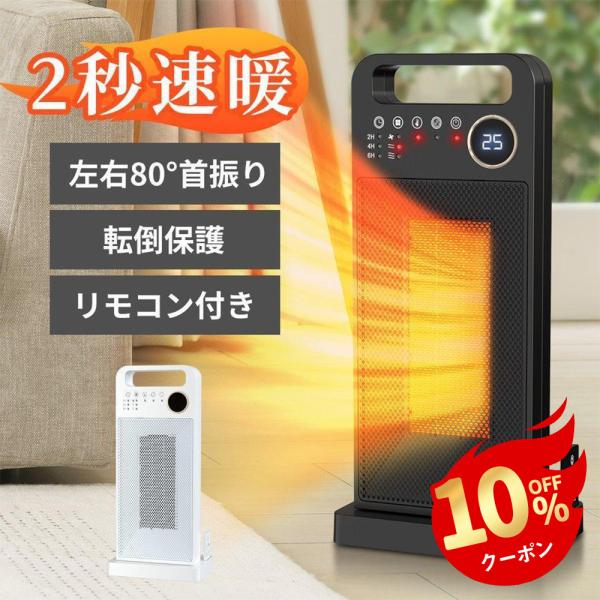 セラミックヒーター2秒速暖 左右80°首振り 温度調節可能 電気過熱保護 転倒OFF 節電 省エネ リモコン付き 即暖 ファンヒーター タイマー機能 無臭 リモコン付き