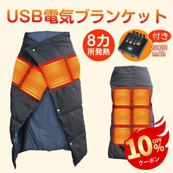電気ひざ掛け 110x134cm 電気毛布 8枚ヒーター 5WAY利用可 3段階温度調整 裏起毛加工 USB給電式 丸洗い可能 マフポケット付き 電気ひざ掛け 防寒対策