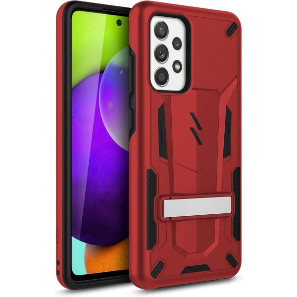 Galaxy A52 5G 2021 ケース カバー 耐衝撃 衝撃吸収 米軍MIL規格 キックスタンド TPU MDM(レッド / ブラック)
