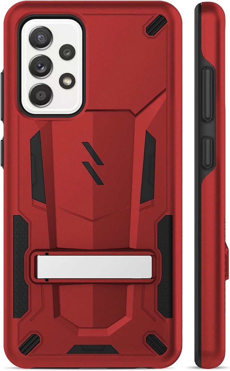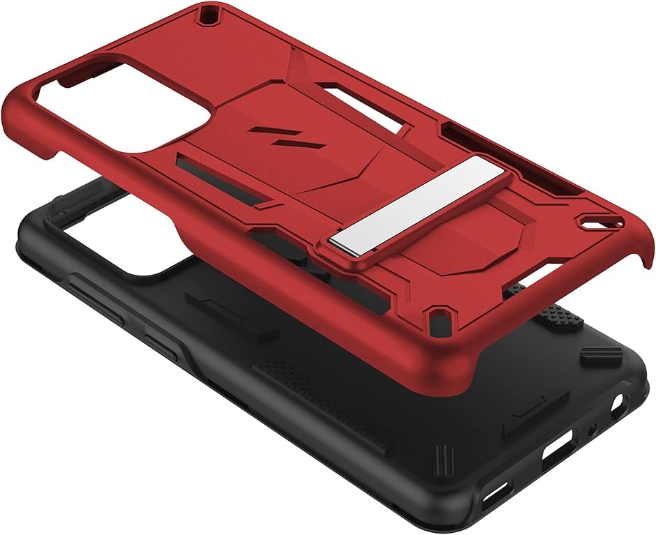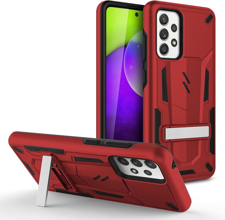 Galaxy A52 5G 2021 ケース カバー 耐衝撃 衝撃吸収 米軍MIL規格 キックスタンド TPU MDM (レッド / ブラック)
