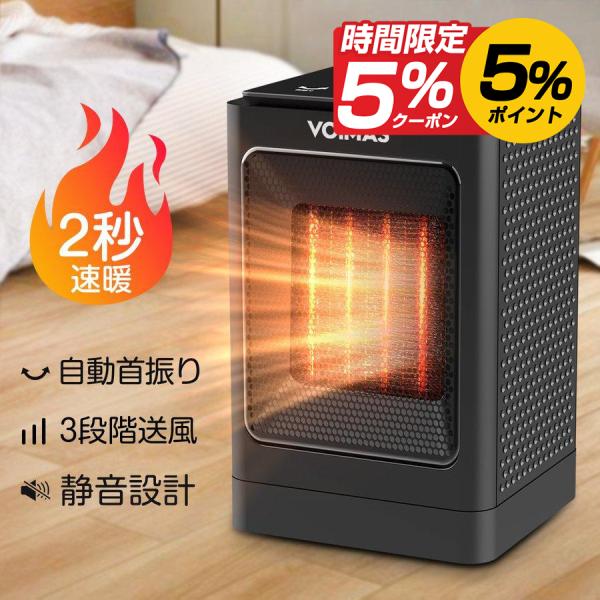 セラミックファンヒーター ファンヒーター 足元暖房 ヒーター 暖房器 左右首振り 速暖タイプ 風量三段階切り替え 一年間保証付き 小型 コンパクト 省エネ