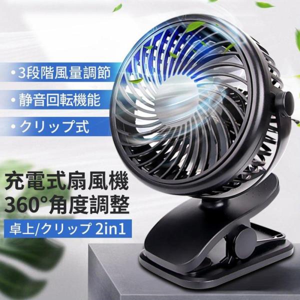 扇風機 クリップ式扇風機 USB式扇風機 卓上扇風機 ミニ扇風機 クリップ 360度回転 風量3段階調節 節電 ベビーカー usb充電式 乾電池対応 携帯 卓上 小型 超静音