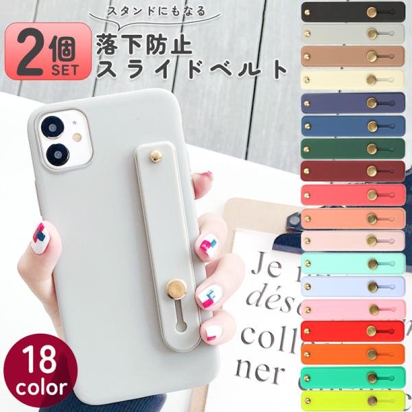 スマホバンド 同色2個セット スマホベルト スマホ落下防止 バンド おしゃれ スマホスタンド グリップ かわいい 18色 無地 くすみカラー