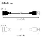 USB延長ケーブル ブラック / ホワイト 1m / 1.5m USB 延長コード 1m 1.5m 延長ケーブル usbケーブル 延長 白 黒 ホワイト ブラック コード ケーブル USB2.0