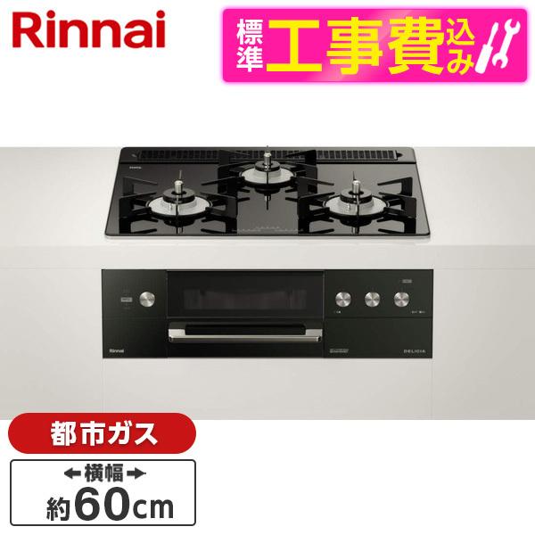 Rinnai RHS31W30E11RCABW-13A 標準設置工事セット ピアノブラック DELICIA(デリシア) ビルトインガスコンロ (都市ガス用・3口・左右強火力タイプ・幅60cm)