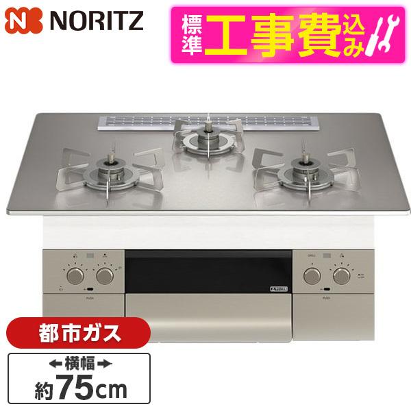 NORITZ N3WU2PWASKSTESC-13A 標準設置工事セット Orche S-FLAT ビルトインガスコンロ (都市ガス用 3口 両側強火力 75cmタイプ)
