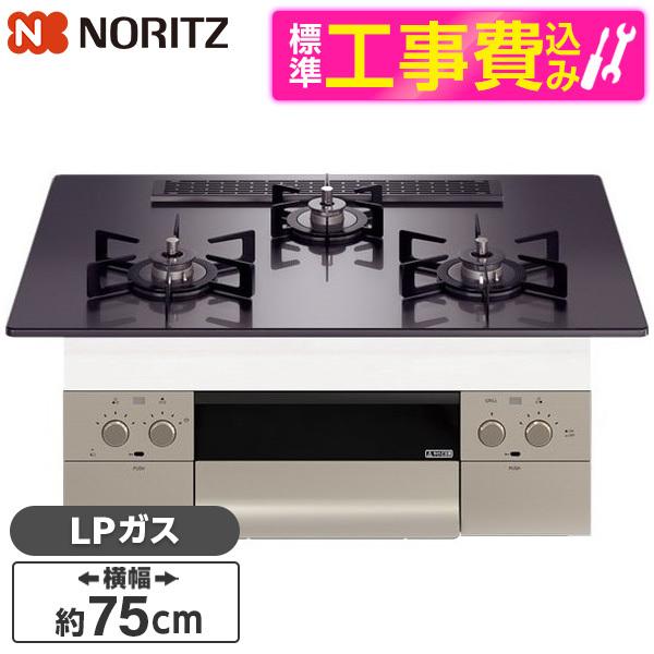 NORITZ N3WU2PWASQSTEC-LP 標準設置工事セット Orche S-FLAT ビルトインガスコンロ (プロパンガス用 3口 両側強火力 75cmタイプ)