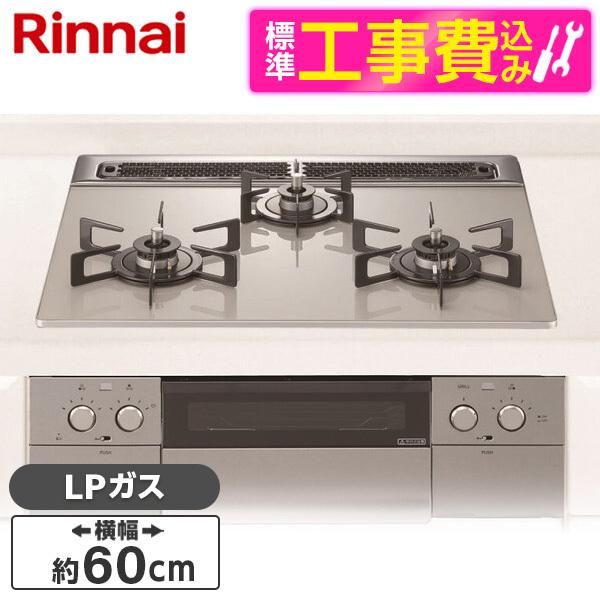 NORITZ N3WU5PWAP2STE-LP 標準設置工事セット ムーンシルバー Nest(ネスト) ビルトインガスコンロ (プロパンガス用・3口・60cm)