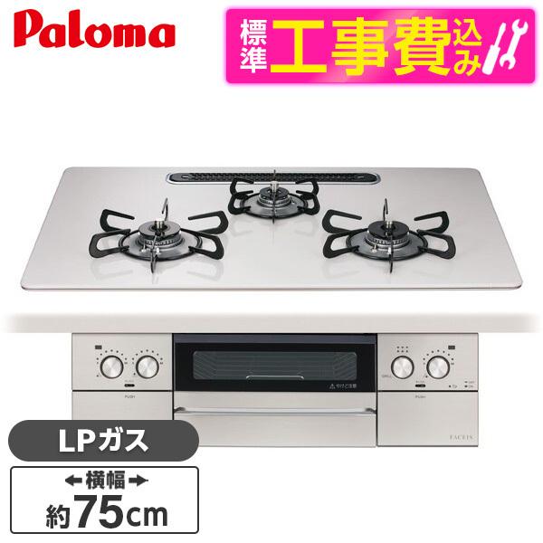 パロマ PD-893WS-U75CV-LP 標準設置工事セット ティアラシルバー フェイシス グランド ビルトインガスコンロ (プロパンガス用・3口・左右強火タイプ・幅75cm)
