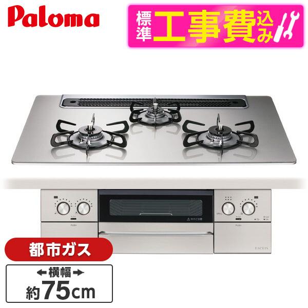 パロマ PD-893WS-75GH-13A 標準設置工事セット シャインシルバー フェイシス グランド ビルトインガスコンロ (都市ガス用・3口・左右強火タイプ・幅75cm)