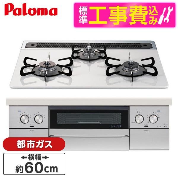 パロマ PD-829WS-60CV-13A 標準設置工事セット ティアラシルバー WITHNA (ウィズナ) ビルトインガスコンロ (都市ガス用・3口・左右強火タイプ・幅60cm)