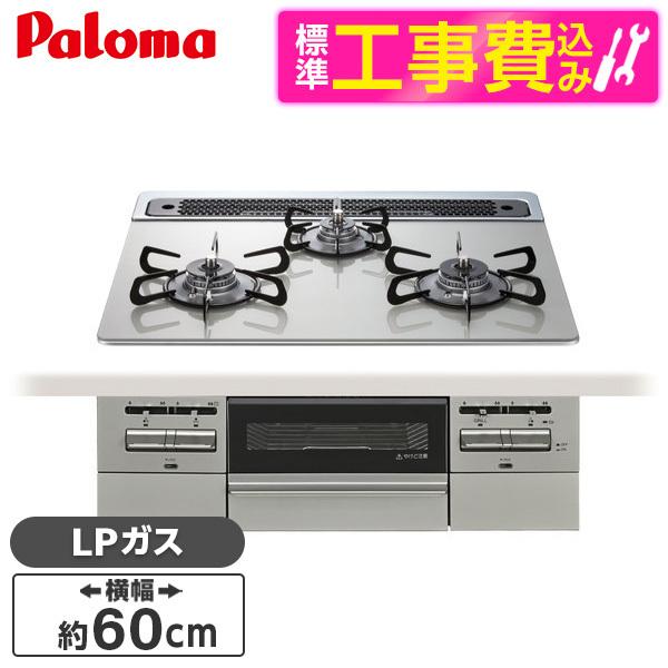 パロマ PD-743WS-60GH-LP 標準設置工事セットシャインシルバー BRilliOα ブリリオアルファ ビルトインガスコンロ (LPガス・60cm・3口・水無し両面焼き)