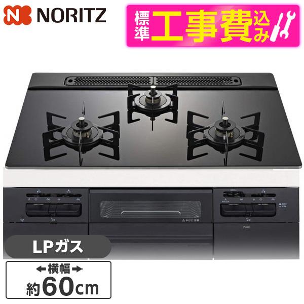 NORITZ N3WV6RWTP1-LP 標準設置工事セット Fami (ファミ) ビルトインガスコンロ (プロパンガス用・3口・両側強火タイプ・幅60cm)