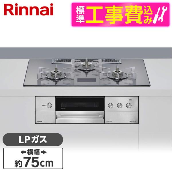 Rinnai RHS71W38M17VNBW-LP 標準設置工事セット クリスタルブラック DELICIA ビルトインガスコンロ(プロパンガス用・両側強火タイプ・3口・75cm)