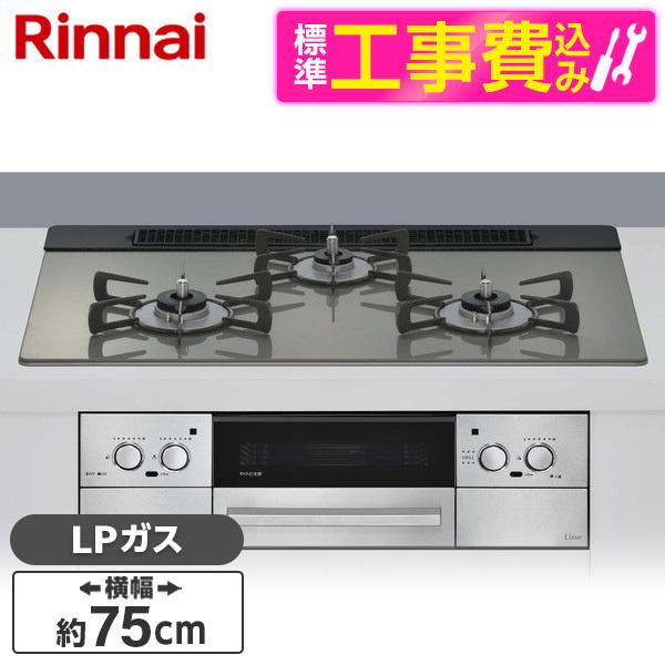 Rinnai RHS71W42J3RSTW-LP 標準設置工事セット クラシックミラー Lisse(リッセ) ビルトインガスコンロ (プロパンガス用・3口・左右強火力タイプ・幅75cm)