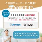 - 商品説明★人気国内メーカーから厳選!下記の国内有名メーカーの中から炊飯器の型番を当店が選定致します。象印(ZOJIRUSHI)、タイガー(TIGER)★ こんな方におすすめ・新生活など家電をお得に買い揃えたい時に・何を選んだらよいか、わからないからおまかせしたい・最新機能にこだわりがなく基本の機能で満足な方[主な仕様]* 本体カラー: ホワイト系* 容量: 5.5合* 炊飯タイプ: マイコン炊飯器* 炊飯モード: 早炊き、急速、炊き込み、おかゆ、おこわ、予約タイマーなど* 本体サイズ: 約幅27×奥行37×高さ22cm* 質量: 約3.6kg* コードの長さ: 約1m※上記サイズは最大値です。お届け商品によって表記のサイズより小さい場合があります。