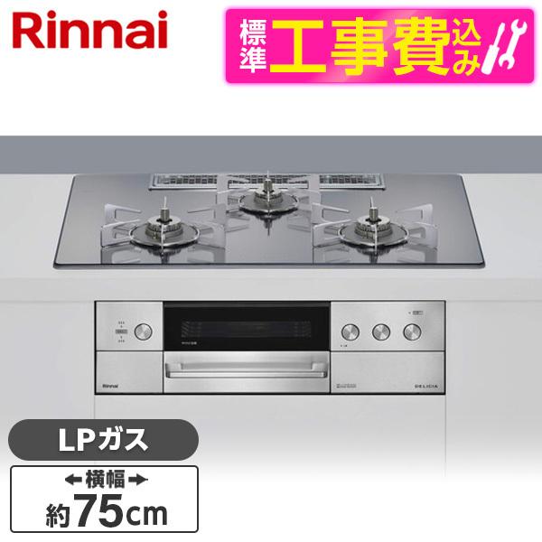 Rinnai RHS72W39M13RSTW-LP 標準設置工事セット プラチナミラー DELICIA (デリシア) ビルトインガスコンロ(プロパンガス用・両側強火タイプ・3口・75cm)