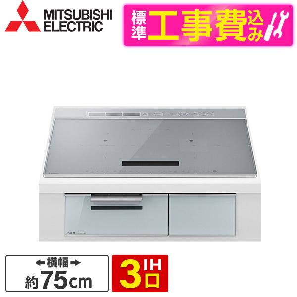MITSUBISHI CS-A107-S 標準設置工事セット シルバー/クリアシルバー CROSS+TOPシリーズ ビルトインIHクッキングヒーター (75cm幅・IH3口・単相200V)