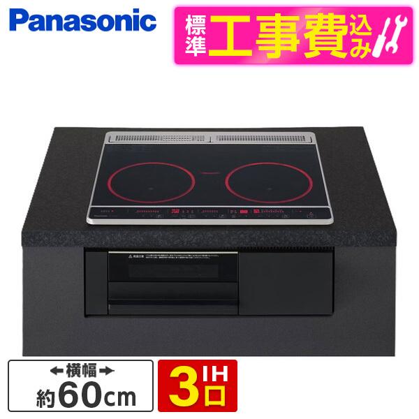 PANASONIC KZ-F1T6XKT 標準設置工事セット ブラック Fシリーズ ビルトインIHクッキングヒーター(60cm幅・IH3口・単相200V)