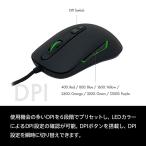 DPI:使用機会の多いDPIを6段階でプリセットし、LEDカラーによるDPI設定の確認が可能。DPIボタン搭載し、DPI設定を瞬時に切換え、(400-レッド / 800-ブルー / 1600-イエロー / 2400-オレンジ /3200-グリーン / 12000-パープル)4Kモニターでの快適な操作を可能にする12000DPIというハイセンシ設定を搭載。