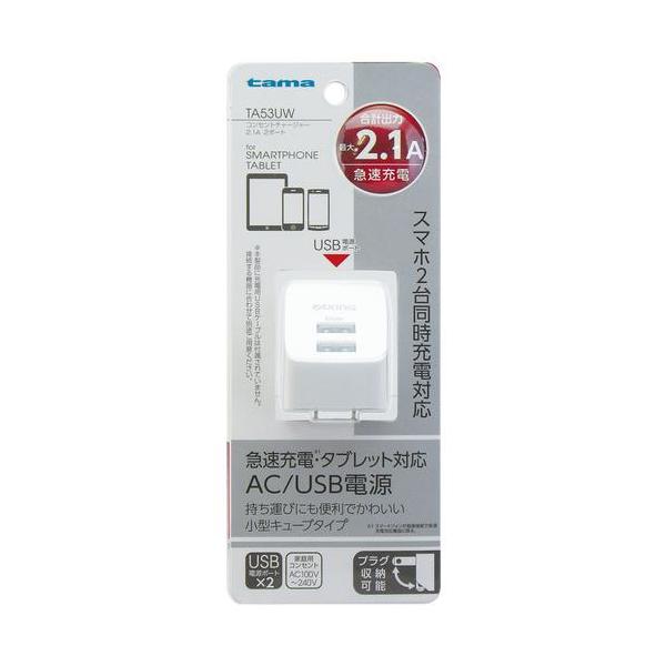 多摩電子工業 TA53U-W ホワイト コンセントチャージャー2.1A2ポート
