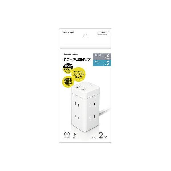 多摩電子工業 タワー型USBタップ 6口+A×2 TSK110U2W(TSK110U2W)