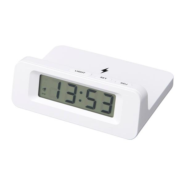 qi対応のスマートフォンを置くだけで充電できる、ワイヤレス充電機能付のデジタルクロックです。