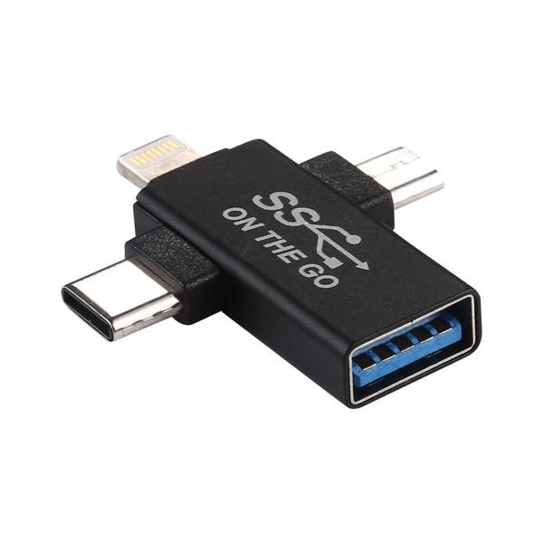 3種類の端子(Type-C、microUSB、iPhone/iPad 8pin)に対応するOTGアダプタ