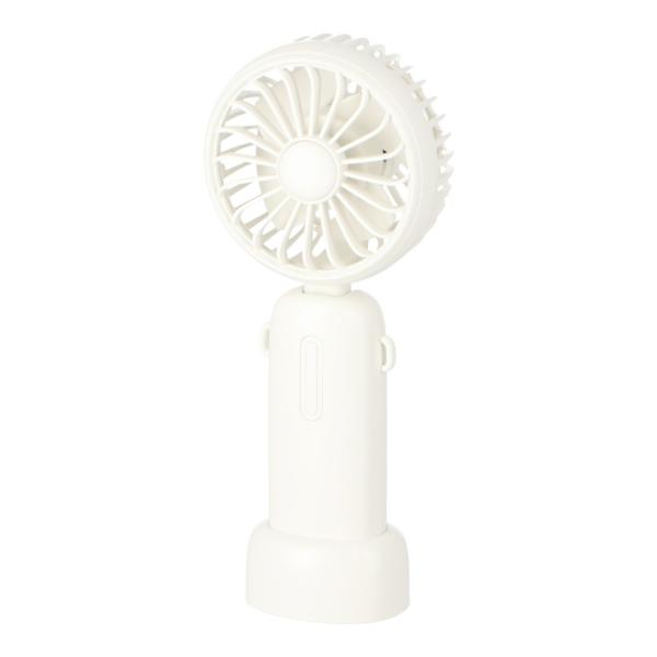 - 【特長】●ハンディ・卓上・首掛けの3WAYタイプ●コンセント不要なUSB電源●充電時間約4時間●3段階風量切替●上下角度調節可能【仕様】●カラー:ホワイト●材質:本体/ABS樹脂 羽根/ポリプロピレン●風量調節:3段階切替(弱、中、強)●消費電力:弱/2.3W 中/3.3W 強/4.5W●入力:DC5V●電池容量:2000mAh●充電時間(約):4時間●連続使用時間(約):風量弱/10時間 風量中/5時間 風量強/1.5時間 ※使用時間は目安です●サイズ(約):幅77.6×奥行44×高さ184mm●重量:約133g(本体のみ)●付属品:スタンド、ストラップ、USB AtoTYPE-Cケーブル、取扱説明書(保証書)