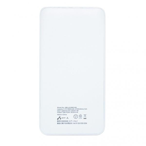 エアージェイ ライトニングケーブル用モバイルバッテリー 白 MB-LA10000WH