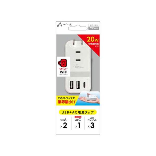 エアージェイ AOT-N1 WH PD20W対応 USB+ACハンディー電源タップ ホワイト AOTN1 WH(AOT-N1 WH)