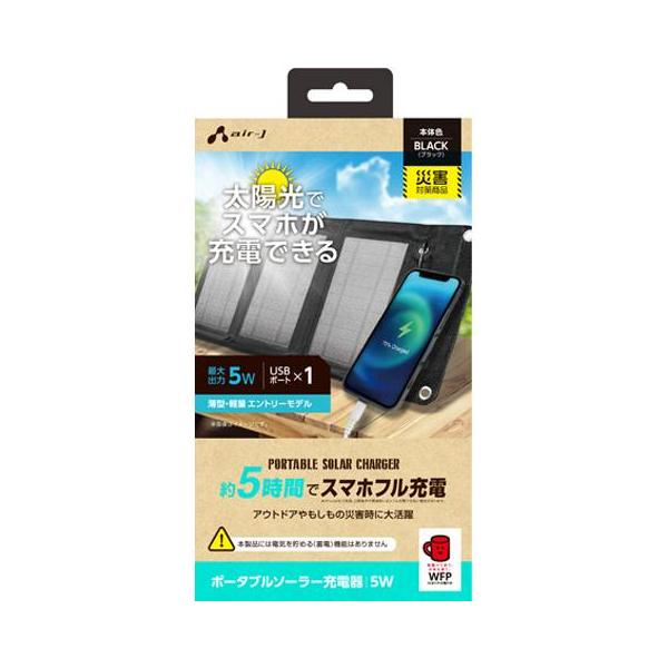 エアージェイ(air-j) AJ-NSOLAR5W BK ブラック ポータブルソーラー充電器 最大出力5W
