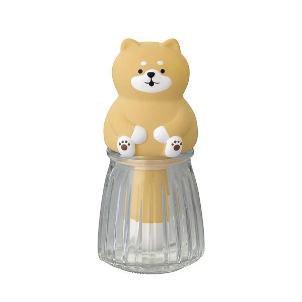 ガラス瓶におしりがすっぽり...ちょっとおまぬけな潤いマスコット。付属の容器に水道水を50〜100ml入れ、本体をセットすると水が徐々に染み込んで加湿します。自然気化式なので電源不要で、夜中や睡眠時でも気にせず使用できます。