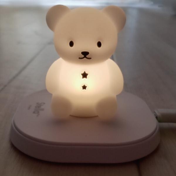 - ★Qi対応ワイヤレス充電器付きの シリコン製の光るフィギュアです。 ★柔らかいシリコン製の小さなライトで大きな癒しを ★使い方は簡単、充電器の上に置くだけ! スタンドから出る微量な電磁波を電力に換えて光ります。 ワイヤレス充電器は携帯をチャージしてないときでも、 微弱な電磁波が常に発生しています。 その僅かな電力を無駄なく利用して、 クマのフィギュアに給電活用しています。 充電器にのせるだけでライトが最初はゆっくり点滅し、 そして優しく点灯します。 (光るまで数分かかる事があります) フィギュアはスタンドから外した後は約5分程度光ります ★セット内容/フィギュア本体(クマ)、専用USBケーブル、 Qi対応ワイヤレス充電器 ★製品サイズ (フィギュア)W46×D42×H60mm (充電器)W86×D86×H11mm ★ギフトにも使える化粧箱入り。 ★材質 (本体)MABS、シリコーン樹脂 (充電器)ABS、シリコーン樹脂 (USBケーブル)PVC ★中国製 ★発売元/株式会社ハシートップイン スマートフォン充電 スマホ充電