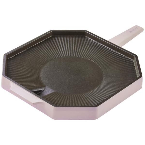 - サイズ約 幅28×奥行42.2×高さ5(cm)柄の長さ:約 12 cm重量約 1.2kg内容量1個材質本体:アルミ鋳物(内側:ノンスティックコーティング)種類パープル、ベージュ生産国韓国製食器洗い乾燥機使用不可熱源ガス火専用区分返品・キャンセル区分(小型商品)ギフトラッピングページを見る焼肉グリル パレットグリルパン 28cm ドクターハウス 八角形おすすめポイントセンスが光る八角形の美しいデザイン韓国の寺院を連想させる、調理器具では珍しい形とパステルカラーが魅力的な韓国発のグリルパンです。真ん中に向かって入る放射線状の溝が、より美しさを際立たせています。余分な油が落ちやすい特殊構造余分な油が落ちやすいよう設計された傾斜と穴があるので、油がとどまりにくくなっています。油の多いお肉もヘルシーに焼け、カリカリでジューシーな焼き上がりになります。また、油はねが少ないので洋服を汚しにくく、安全に料理を楽しめます。※油が落ちる穴が開いているので、油受けになるお皿を用意してください。五徳キャッチャーでアウトドアでも安心底面に五徳キャッチャーがついており、五徳とグリルパンをしっかり固定してくれるので、アウトドアシーンでも安全にグリル料理を楽しめます。全体の厚さが約5cmと薄く、1.2kgという軽さ、八角形で縦にしても安定するので、持ち運びにとても便利です。商品詳細優れた熱伝導性厚みのある鋳造グリルパンなので、底から側面まで全体的に熱伝導に優れています。食材にムラなく熱がはいるので、おいしく素早く調理ができます。ノンスティック加工で焦げ付きにくいノンスティックコーティングは、ふっ素樹脂でも対応できないような強力な粘着物の付着を防ぐことができます。セラミックと樹脂の複合によって形成された新しい表面処理で、焦げ付きにくく、お手入れも簡単です。いろいろな韓国料理を自宅でおしゃれに中央がくぼんだ構造を利用して、中央にホイル皿やココット皿を置いてチーズを溶かせばチーズサムギョプサル風に、オリーブオイルを使えばアヒージョ風に召し上がることもできます。ホームパーティーや女子会などで写真映えするグリル料理にぴったりです。女性が使いやすい調理器具小ぶりなサイズで2色のパステルカラーを展開し、軽量で薄く、立てて置けるので収納場所にも困りません。女性が普段使いしやすく、1人焼き肉にも最適な商品です。お洒落な収納袋もついているので、ギフトにもおすすめです。カラー※実際の色味に近い画像はこちらです。お使いのモニター設定、お部屋の照明などにより実際と異なる場合がございます。サイズご注意点・同一素材を使用しておりますので加熱時に取っ手部分も熱くなります。・ノンスティックコーティングは260度以上の高温で調理すると剥がれる可能性があるため、高温にしすぎないよう注意してください。急激な温度変化でもコーティングが損傷する可能性があるため、熱い状態のフライパンを冷水で洗わないでください。関連キーワード:ガス火専用 直火専用 ガスOK 直火OK ノンスティックコーティング お手入れ簡単 人気 便利 おすすめ 調理器具 キッチン用品 調理道具 熱伝導 本格的 ギフト 贈答 プレゼント サムギョプサル アウトドア キャンプ ベランピング お洒落 ニュアンスカラー くすみカラー 韓国居酒屋 韓国ポチャ シンプル かわいい 薄い 一体型 アルミ鋳物 PFOAフリー LH11527関連商品はこちら グリルプレート IH対応 四角 ソリッドグリ8,459円ヘルシー焼肉グリル 角形 ガス火専用 コンパク2,920円グリルプレート IH対応 四角 ソリッドグリル6,160円ヘルシー焼肉グリル 丸形 ガス火専用 コンパク2,920円片手グリルパン 26cm IH対応 copan3,300円BRUNO グリルプレート IH対応 オーブン6,600円プルコギグリル 28cm カセットコンロ専用 2,920円グリルパン 20cm 郷技 鉄製 魚焼きグリル4,380円丸型グリルパン 19cm IH対応 copan2,750円Leye グリルパン IH対応 蓋付き 日本製13,200円グリルパン 蓋付き マイグリル 角型グリルパン3,100円グリルパン IH対応 コルクミトン付き スチー15,400円