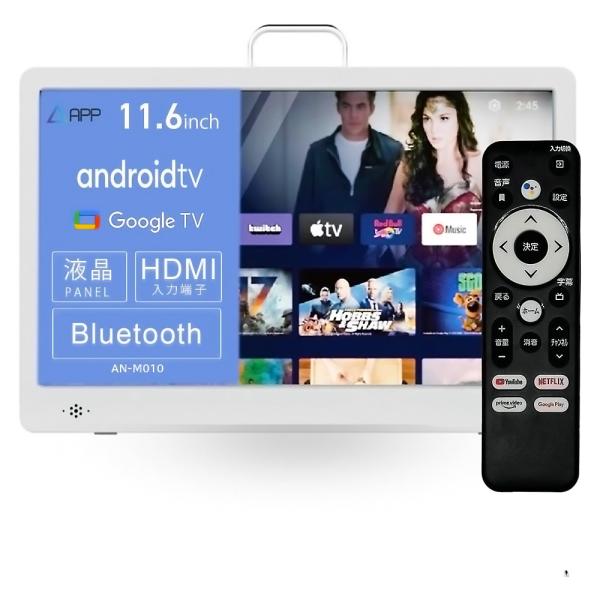 小型チューナーレステレビ 11.6インチ NewBridge KEIYO Android TV ネット動画対応 HDMI入力端子 音声リモコン付 ホワイト AN-M010W ◆宅