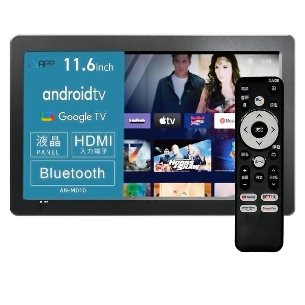 小型チューナーレステレビ 11.6インチ NewBridge KEIYO Android TV ネット動画対応 HDMI入力端子 音声リモコン付 ブラック AN-M010B ◆宅