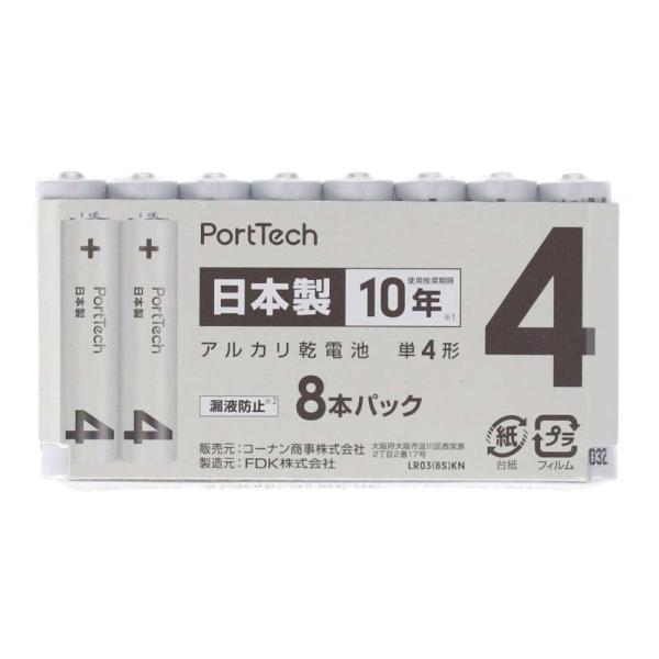 コーナン オリジナル PortTech アルカリ乾電池 単4形 8個パック LR03(8S)KN