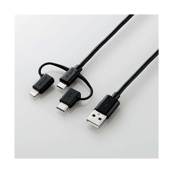 - エレコム MPA-AMBLCAD12BK 3in1スマートフォン用USBケーブル 1.2m ブラック 500