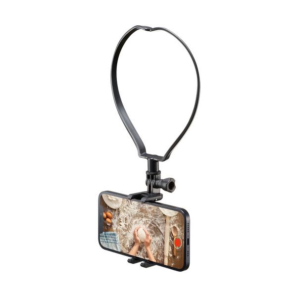 - ■首に掛けて撮れる!目線や手元などの一人称視点での撮影が簡単に行えるネックストラップ型スマホホルダーです。スマートフォンホルダーは6.5インチまでの大きさに対応しています。■ホルダー部分を動かすことで、撮影角度の調節が可能です。(180度) ■首に掛けることで、一人称視点で臨場感のあるシーンを撮影が可能です。 ■スマートフォンホルダーは6.5インチまでの大きさに対応しています。■材質:ネックストラップ:ABS、スマートフォンホルダー:ABS■外形寸法:本体:約幅約195mm×奥行約143mm×高さ約18mm ※突起部を除く、ホルダー:幅約30mm×奥行約25mm×高さ約83mm■重量:44g■カラー:ブラック■対応機種:4.7〜6.5インチ 各種スマートフォン(ホルダー挟み幅)約55〜75mm■内容物:ネックストラップ、スマートフォンホルダーエレコムダイレクトショップ首に掛けて撮れる!目線や手元などの一人称視点での撮影が簡単に行えるネックストラップ型スマホホルダーです。スマートフォンホルダーは6.5インチまでの大きさに対応しています。一人称視点で臨場感のあるシーンを撮影可能首に掛けることで、一人称視点で臨場感のあるシーンを撮影が可能です。角度調節可能ホルダー部分を動かすことで、撮影角度の調節が可能です。(180度)対応スマートフォンサイズスマートフォンホルダーは6.5インチまでの大きさに対応しています。使用方法ホルダーに機器本体を挟みます。※機器本体側面の操作ボタンに干渉しない位置で挟み込んでください。※スマートフォンがしっかり挟み込まれいることをご確認のうえご使用ください。ストラップ部分を広げながら、首に掛けてください。※ストラップを広げすぎると割れるおそれがありますので、ご注意ください。※撮影の際は横ネジをしっかりと締めてください。