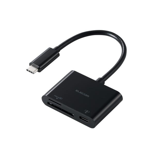 エレコム MR3C-C20PBK SDカードリーダー Type-C SD/microSD対応 PD100W ケーブル一体型 ブラック