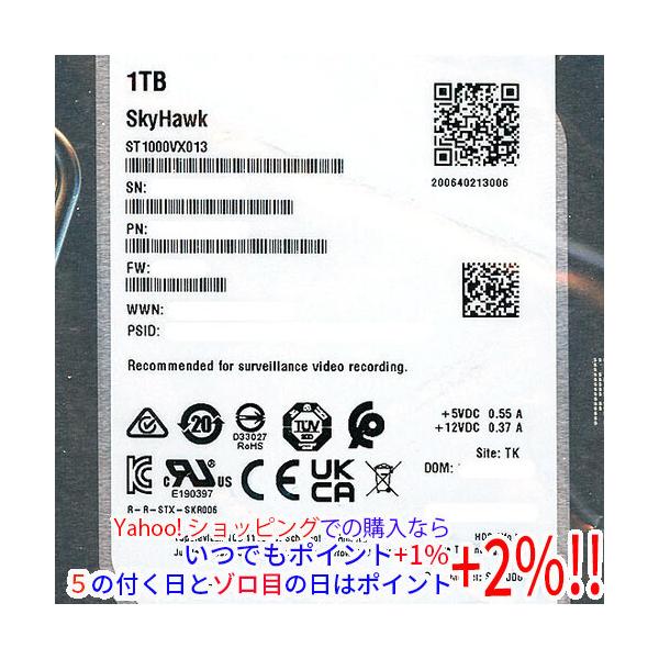 - 【商品名:】SEAGATE製HDD ST1000VX013 1TB SATA600 / 【商品状態:】新品です。/ 国内正規代理店では、ありませんのでメーカー保障はございません。 / 【検索用キーワード:】≪ハードディスク ハードディスク・HDD(3.5インチ) 即納≫ ST1000VX013 [1TB SATA600] / 【型番:】 ST1000VX013 [1TB SATA600] / 【仕様:】容量 1TB/ 書き込み方式 CMR/ インターフェイス Serial ATA600/ キャッシュ 256MB/ 消費電力 アイドル時:2.5W/スリープ時:0.25W/スタンバイ時:0.25W/ ディスク枚数 1 枚 /