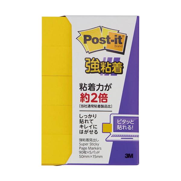 付箋 スリーエム ジャパン ポスト・イット強粘着見出し 50×15mm 90枚×5 VDイエロー 700SS-YN