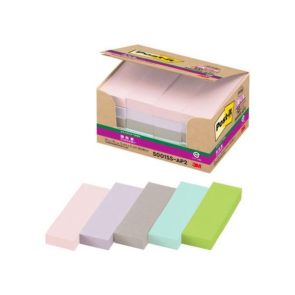 3M ポストイット 強粘着 75mm×25mm パステルカラー5色 20冊 ふせんタイプ 強粘着タイプふせん インデックス メモ ノート