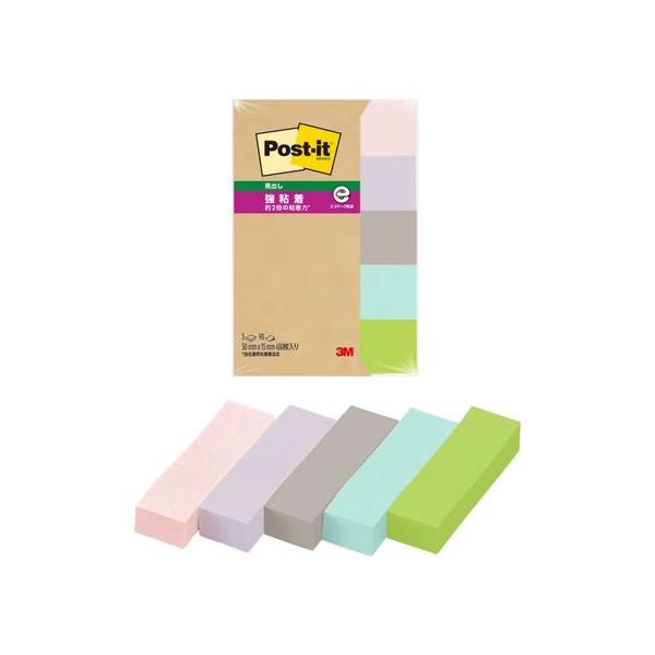 3M ポストイット 強粘着 見出 50mm×15mm パステルカラー5色 5冊 ふせんタイプ 強粘着タイプふせん インデックス メモ ノート