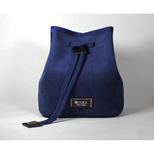- カメラを傷つけない優しいデザインとは、開口部に金具やファスナーを使わないことだと考えました。程よい厚みとしなやかさをもつ巾着タイプのポシェットが、あなたの大切な愛機を守ります。手紐を緩めて開口部を広げオープンにすると、お気に入りのバッグの中にカメラスペースを作ることができます。このプロダクトは、”包む感覚で守る”をコンセプトにした蔵CURAの新しいカメラポシェットです。メイン素材には、植物由来の再生資源を一部に使用したUltrasuedeRを使っています。素材が持つ厚みと弾性はカメラを程よく守るに適していて、手紐を締めるとカメラのサイズなりにドレープし収まります。内装にはサイズ違いのオープンポケットがありスモールアクセサリーを仕分けることができます。蔵CURAが刻印されたコードバン革は、締め切った際に遊びがちになる手紐の“鞘”になるようデザインされました。