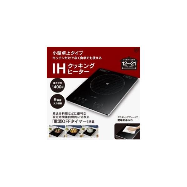- 納期目安 (メーカーに在庫がある場合)13:30までにご注文の場合約3〜7日後出荷(土日祝日を除く)※表示の納期目安はあくまで目安ですのでお約束ではありません。具体的納期は都度お問い合わせください。お取り寄せ品です!ご注文後[商品欠品]及び[商品完売(廃番)]が発生する場合がございます。あらかじめご了承の上ご注文お願いいたします!またご注文の数量、お届け先によって別途送料が発生する場合がございます。その場合当店よりご連絡させていただきますのでご対応お願いいたします。商品未発送の状況でもメーカーによってはキャンセル不可となり場合もございますのでご了承の上ご注文お願いいたします。※個人宅不可!お届け先が法人様宛に限ります!●こちらの商品は条件関係なく必ず送料がかかります!※ご注文時に自動で付く送料初期設定ですので変更される可能性がございます。またご注文数量、お届け先によって追加送料発生や個人宅様可が不可になるなどの変更が起こる可能性もございます。その場合当店よりご連絡させていただきますのでご対応お願いいたします。メーカーから出荷となります!お届け先が北海道・沖縄・離島・特殊地域の場合別途送料が発生する可能性がございます!その場合当店よりご連絡させていただきますのでご対応お願いいたします。【別途送料1080円〜】【直送】【別途送料】【個人宅不可】※記載の商品画像はイメージ(代表)画像ですので画像だけの情報のみでご購入はお控え頂き、必ず記載内容をご確認下さい。・特長●キッチン以外にも食卓でも使える、小型卓上タイプのIHクッキングヒーターです。●電磁誘導を利用した調理器具で鍋底に発生した渦電流によって鍋を直接加熱するため、熱効率が良く、無駄な熱が発生しません。●平らで直径が12cmから21cmの底を持つ鍋に対応できます。●煮込み料理などに便利な設定時間後自動的に切れる「電源OFFタイマー」が搭載されています。●最大火力は1400Wで、9段階で細かく火力調節を行うことができるので、料理の幅が広がります。●ガラストッププレートでお手入れも簡単です。●なべ検知機能、な当社管理番号633-9586--検索キーワード--
