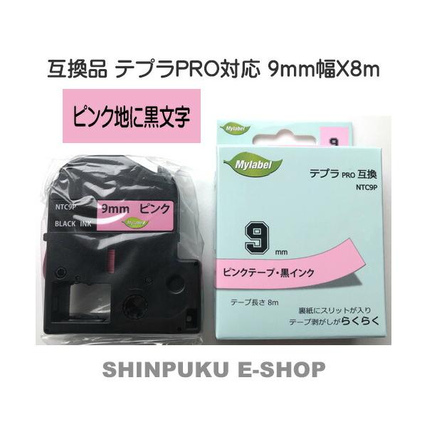 テプラテープ 9mm 桃地に黒文字 NTC9P キングジム用 テプラPRO互換SC9P(ポイント消化)(Z)