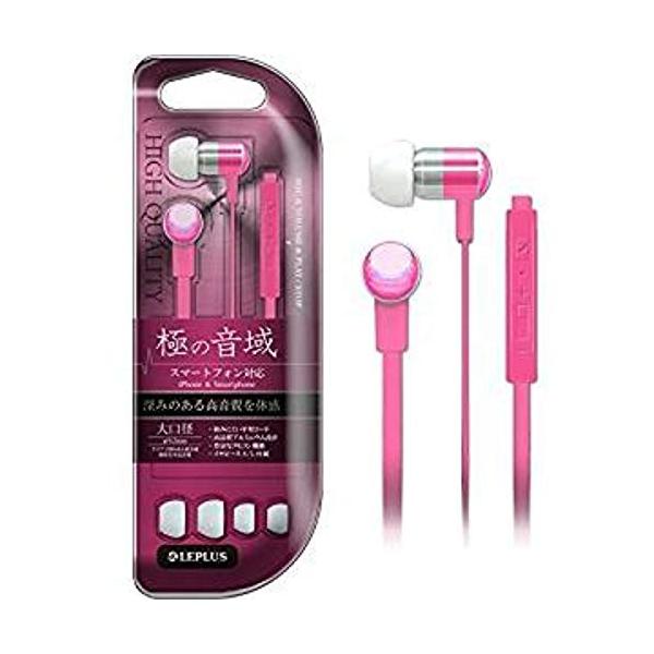 iPhone/スマートフォン イヤフォン(ボリューム/マイク付) 「極の音域」 ピンク【アウトレット】